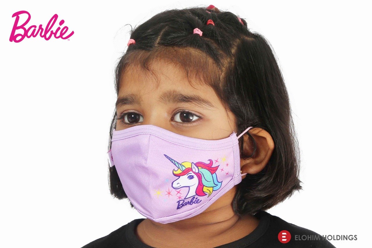 A fun and functional light purple Barbie graphic face mask for kids, perfect for adding a touch of magic and iconic style to protective wear.