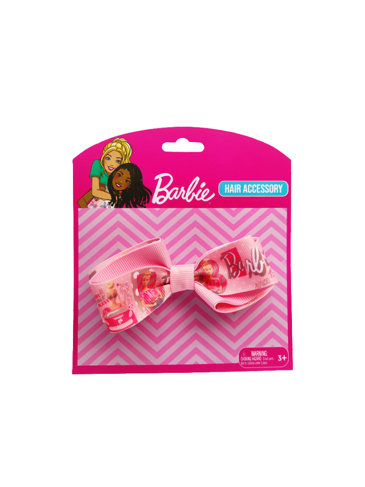 Elevate any look with the Barbie “Iconic Crew” Hair Bow, where character charm meets durability. Crafted from high-quality, double-layered grosgrain ribbon, this bow is engineered to hold its signature shape through school days, active playdates, and weekend celebrations. The eye-catching top layer features a trendy, colorful pattern of Barbie characters that pops against the solid pink bottom layer and packaging.