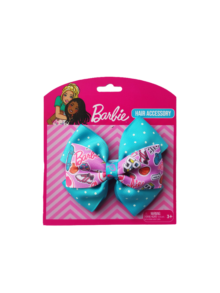 Bring a pop of fun and style to your look with the Barbie Pink & Aqua Print Hair Bow! Featuring a fun aqua blue and pink patterned design on durable grosgrain ribbon and a secure alligator clip, this cute bow is the perfect accessory for any daily adventure.