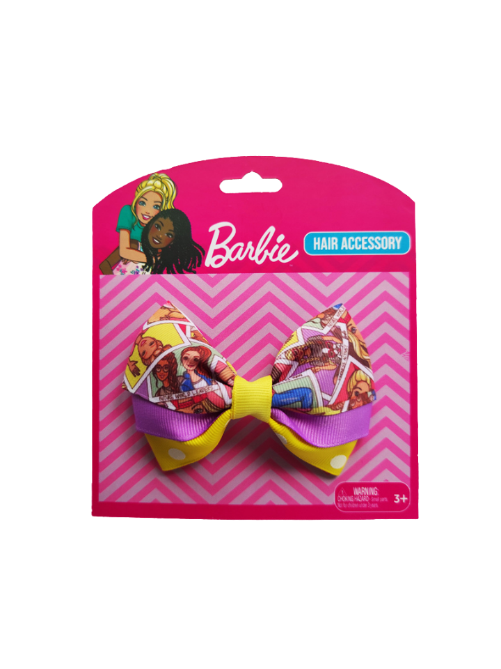 Channel your inner hero and accessorize with the Barbie “Pop Art Hero” Hair Bow! Featuring a vibrant, action-packed comic book graphic pattern layered over a chic yellow base with a snag-free alligator clip, this bow is the ultimate companion for every daily adventure.