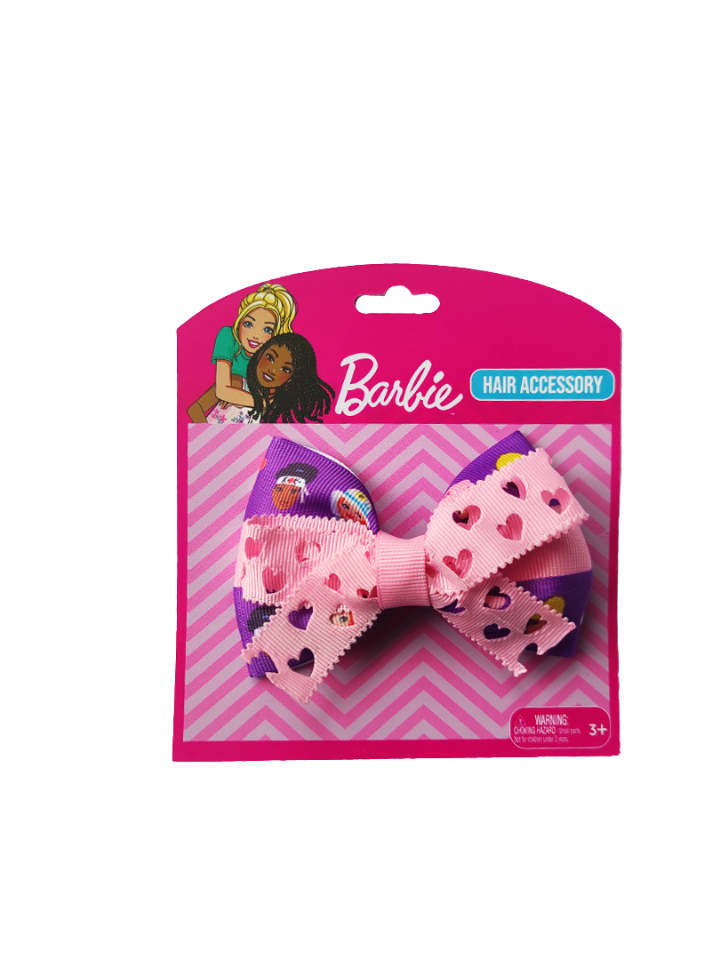 Add a touch of iconic Barbie style to any hairstyle with this vibrant and durable hair bow. Crafted from high-quality, long-lasting ribbon, this bow holds its shape beautifully through daily wear and active playdates. It is securely attached to a high-strength alligator clip, designed to stay firmly in place in all hair types while remaining gentle on the hair. Perfect for accessorizing a casual school outfit, a party dress, or a themed event, this eye-catching bow is an essential accessory for any young fashionista. This is an officially licensed Barbie fan merchandise product with a trendy, recognizable design.
